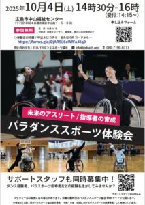 2025年10月4日(土)に広島市中山福祉センターにて開催の『パラダンススポーツ体験会』を開催します。